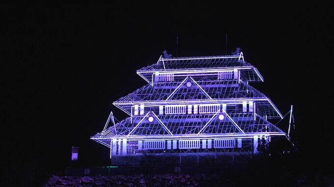 福岡市の福岡城跡ではパイプで作られた「天守閣」のライトアップイベントが7日から期間限定で実施されます。福岡城の天守台に金属パイプを組み立てて作られた「天守閣」。高さがおよそ14メートルで様々な色のライ…