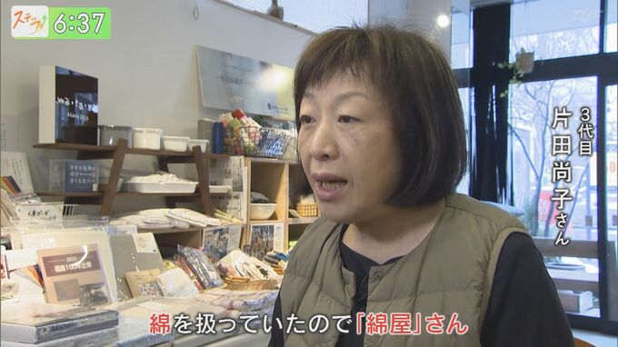 --片田尚子さん(3代目)「(店が)半壊になって、壊して全壊っていう形になったんですね。大きく箱(店舗)が変わったので、そこで自分のやりたいことを見つけてきたっていうのが大きな境になって。店にふらっと来ていただけるものがあったらいいなと思って、コットンのものを扱い始めたんです。」