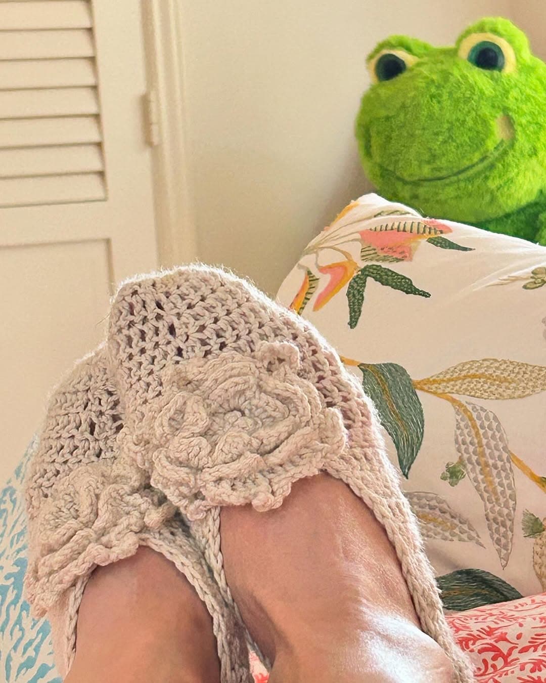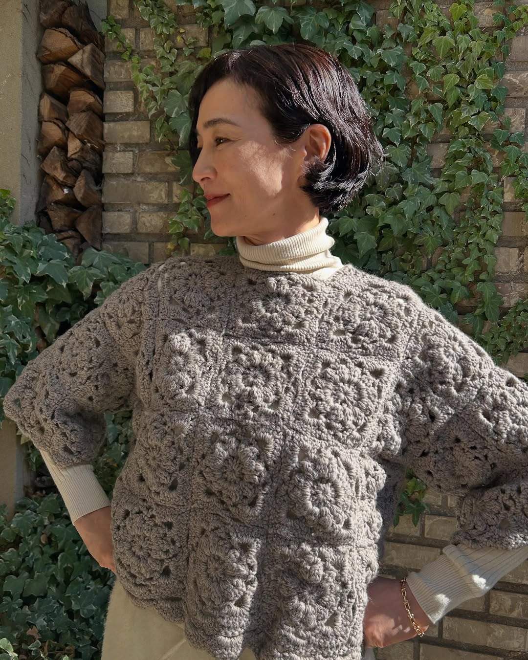 安田さんは、以前の投稿でも、かぎ編みのベストやグラニースクエア編みのセーター、手編みのルームシューズを紹介していました。