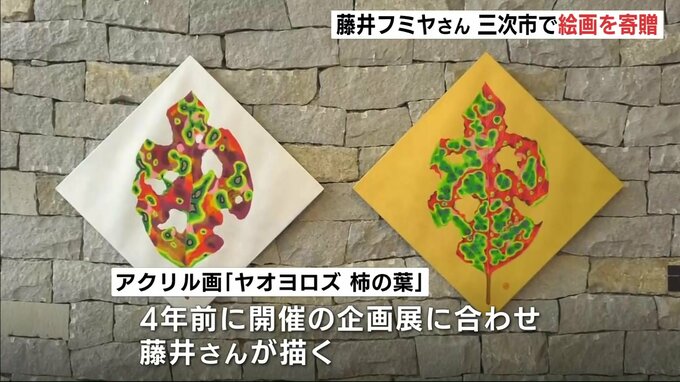 歌手の藤井フミヤさんが、自作のアクリル画を広島県三次市の美術館に寄贈しました。