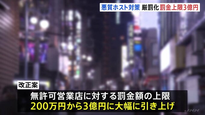 悪質なホストクラブに対し、罰則を大幅に強化する方針です。女性客に高額な売掛金を負わせ、売春を強要するなどの悪質ホストクラブ問題をめぐり、政府はきょう、風営法の改正案を閣議決定しました。改正案では、▼…
