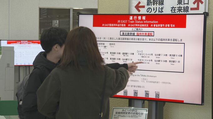 これを受け、JR東日本は7日、東北・山形・秋田新幹線の連結運転をとりやめていて、このうち、山形新幹線は福島ー新庄の間で折り返し運転を行っています。このため、福島駅は新幹線を乗り換える人で混雑しました。