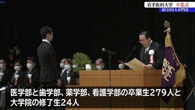 医療の担い手たちが新たな一歩です。岩手医科大学の卒業式が盛岡市で行われ、300人あまりの卒業生が旅立ちを迎えました。