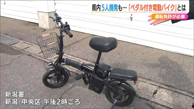 「モペット」と呼ばれる「ペダル付き電動バイク」をご存じでしょうか。オンラインでも簡単に購入することができますが、運転免許が必要です。新潟県内ではこれまでに無免許で「ペダル付き電動バイク」を運転した疑いで5人が摘発されていて、警察が注意を呼びかけています。