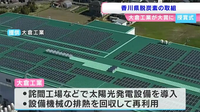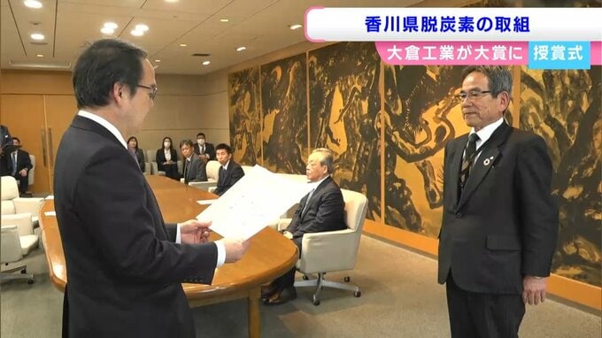 脱炭素につながる取り組みを促進しようと県が始めたもので、今回で3回目です。香川県でポリエチレン製品などをつくる大倉工業が大賞に選ばれ、池田香川県知事から表彰状が手渡されました。