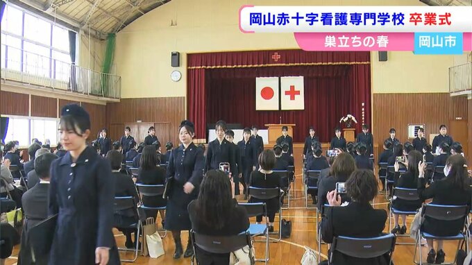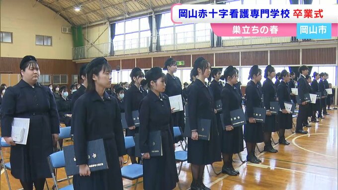 巣立ちの春です。岡山市北区の岡山赤十字看護専門学校で卒業式が開かれ、未来の看護師たちが学び舎をあとにしました。