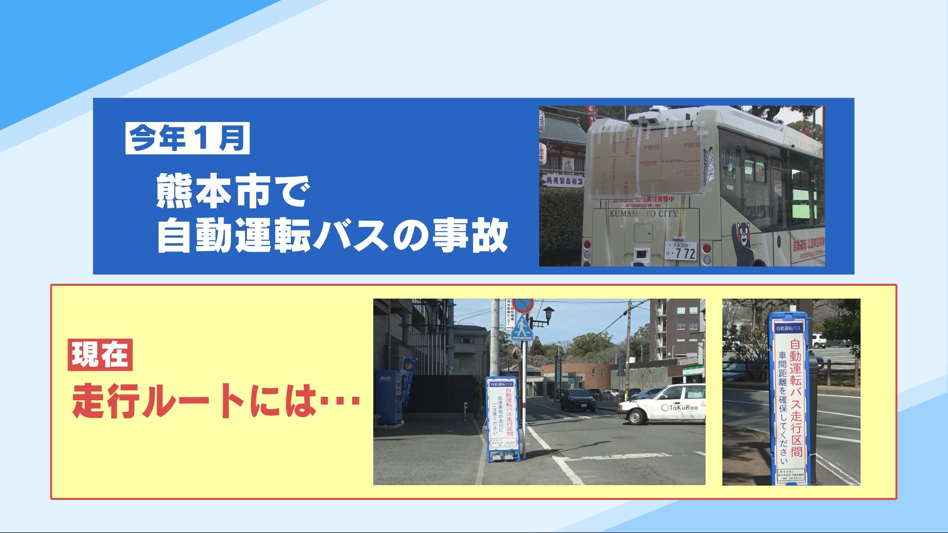 (スタジオ解説)熊本市では今年1月自動運転バスの事故がありました。その影響もあり、熊本市新町など熊本城周辺では車間距離をとるよう注意を呼びかける看板が出されています。