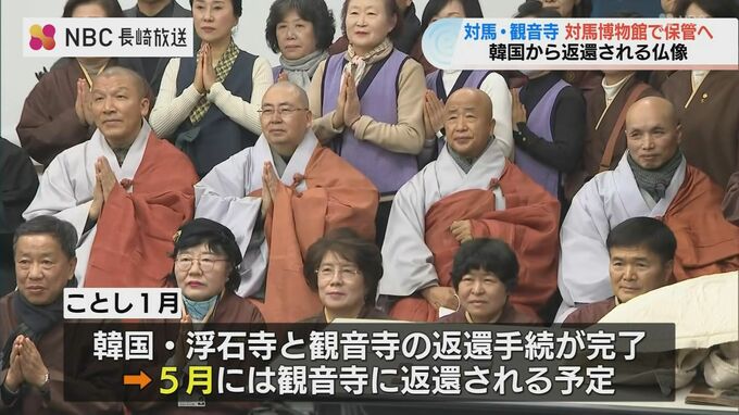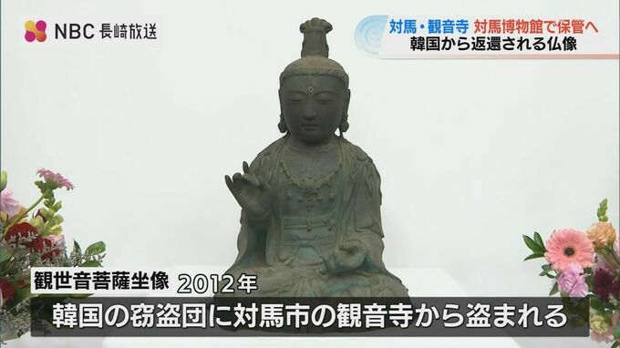 2012年に韓国の窃盗団によって対馬市の観音寺から盗まれた県の有形文化財「観世音菩薩坐像」。ことし1月には仏像の所有権を主張していた韓国・浮石寺との返還手続きが完了し、5月には観音寺に返還される予定です。