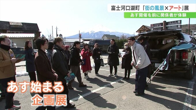 山梨県富士河口湖町で8日始まる企画展。作品会場は河口湖エリア全体です。