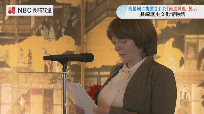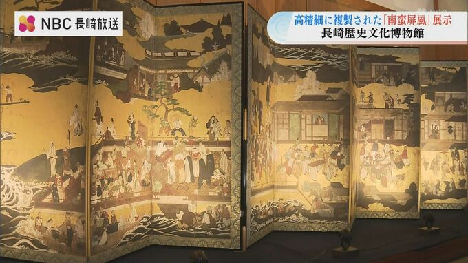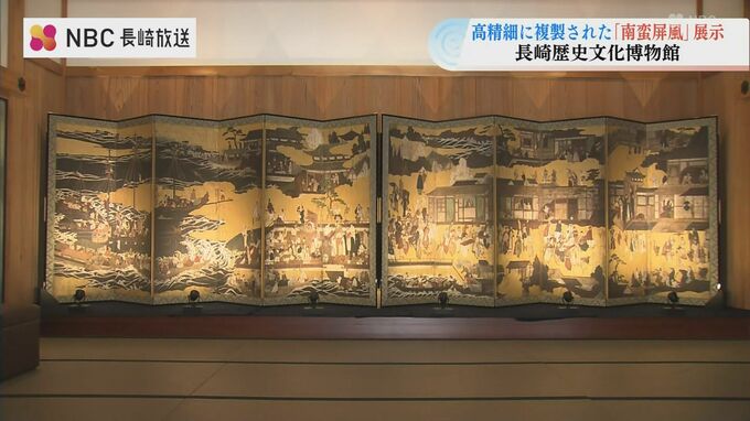 細かい部分まで忠実に再現された「南蛮屏風」は、8日から16日まで、長崎歴史文化博物館のエントランスホールに展示されます。