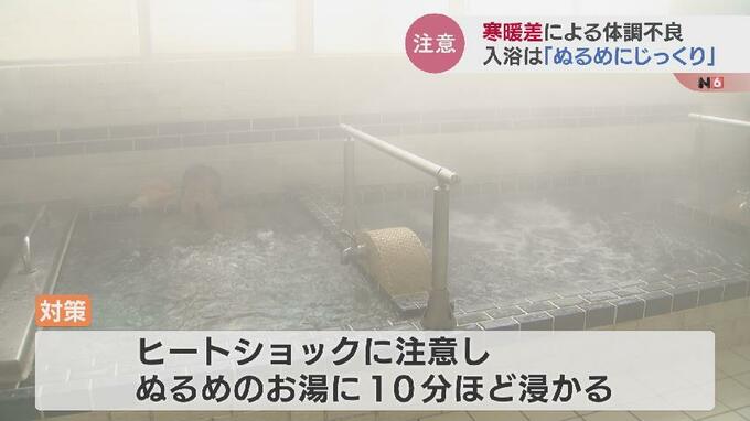 入浴のポイントは、ヒートショックに十分注意し、ぬるめのお湯に10分ほど浸かること。体をじっくり温めることが大切だといいます。