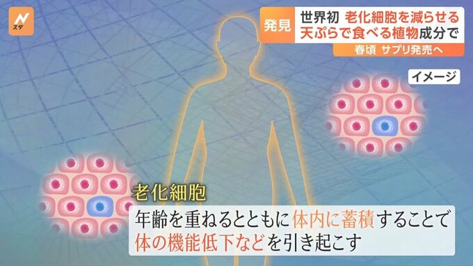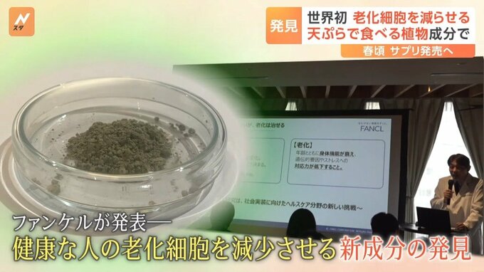 健康食品大手のファンケルが発表したのは、健康な人の“老化細胞”を減少させることができるという新たな成分の発見。これは、世界で初めてのことだといいます。