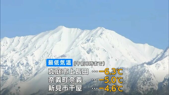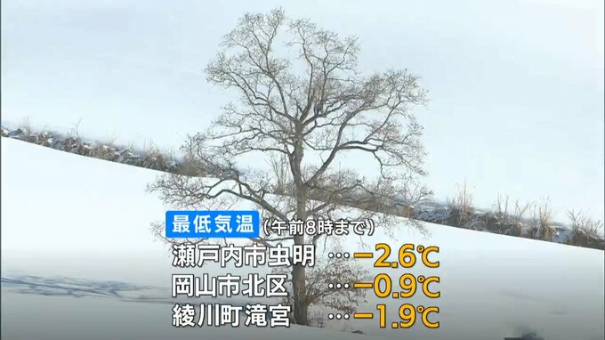 最低気温は前の日よりもぐっと下がり、真庭市上長田で-6.3℃となったほか、沿岸部でも多くのところで氷点下となり、厳しい冷え込みになりました。