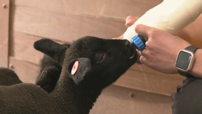 元気いっぱいにミルクを飲む羊の赤ちゃん。岐阜県郡上市の牧歌の里では、羊の赤ちゃんがことしに入ってから10匹生まれました。体長はおよそ40センチ、現在は色の黒い羊の赤ちゃんは、半年ほどで親と同じように白い…