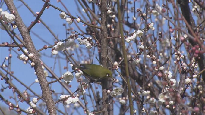 三重県伊勢市で紅白の梅の花が見ごろとなっています。