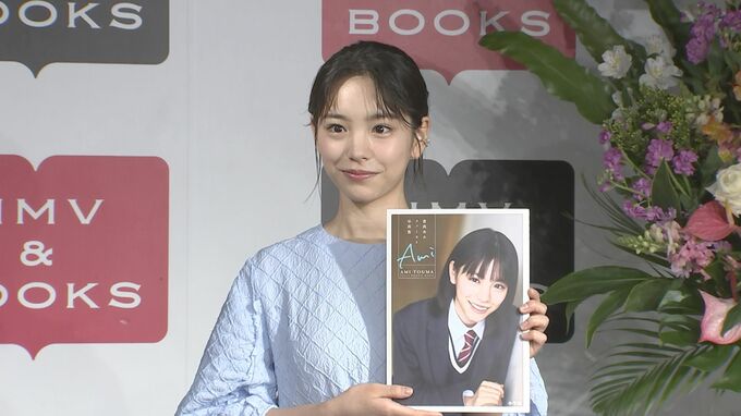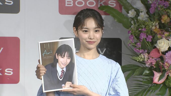 俳優の當真あみさんが、ファースト写真集『Ami』の発売記念プレス取材会に登場しました。写真集は、當真さんを中学校3年生から高校3年生まで、毎年定期的に撮りためて成長の軌跡を追った「卒業アルバム的」一冊です。
