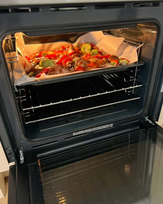 そして「オーブン料理は比較的家でよく作っているので後はオーブンの使用法を把握するのみ…」「温度も時間も設定よし」「パプリカだってこんな大きな拳で応援してくれているではないですか と微笑ましく鼻歌まじりで昨夜から漬け込んでいたお肉を野菜の間におき私のやるべき事は殆ど終了、後は40分待つのみとなった」「そして30分経った」「ら、ら!」「何やら焦げ臭い」と、綴りました。