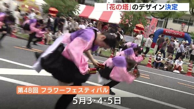 ゴールデンウィークに開催されるフラワーフェスティバルのシンボル、「花の塔」のデザインが決まりました。