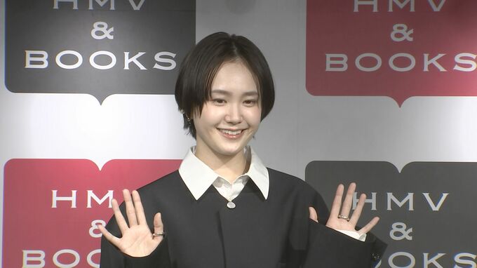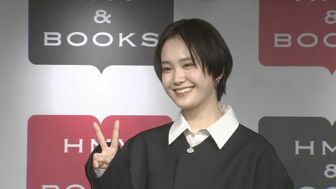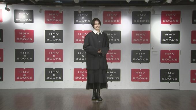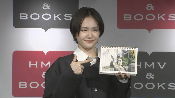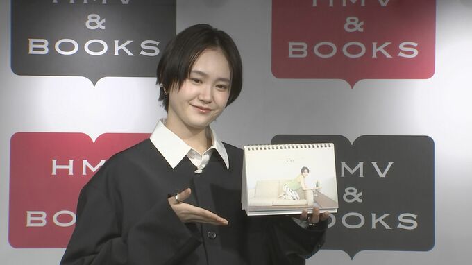 俳優の尾碕真花(おさきいちか)さんが「尾碕真花 2025.4-2026.3カレンダー」(わくわく製作所)発売記念イベントにシックな黒の衣装で登壇しました。