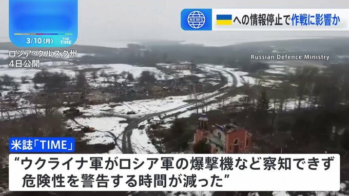 アメリカがウクライナへの情報提供を一時停止して以降、ウクライナ軍が越境攻撃を行うロシア西部クルスク州で作戦に影響が出ていると伝えられています。アメリカの有力誌「タイム」は8日までに、“ウクライナ軍が…