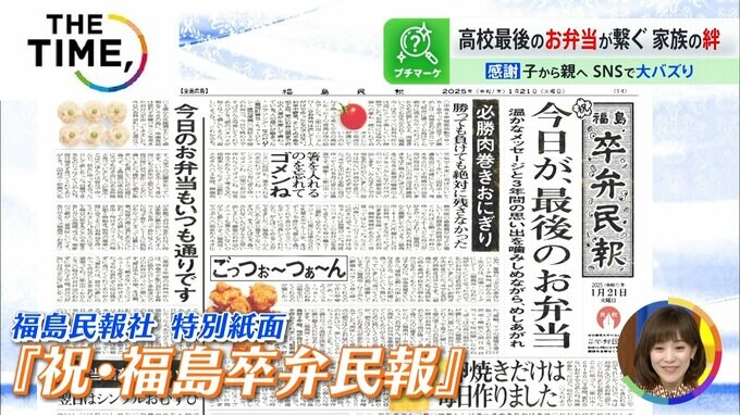 福島県では、地元紙の『福島民報社』が特別紙面として「祝・福島卒弁民報」を発行。