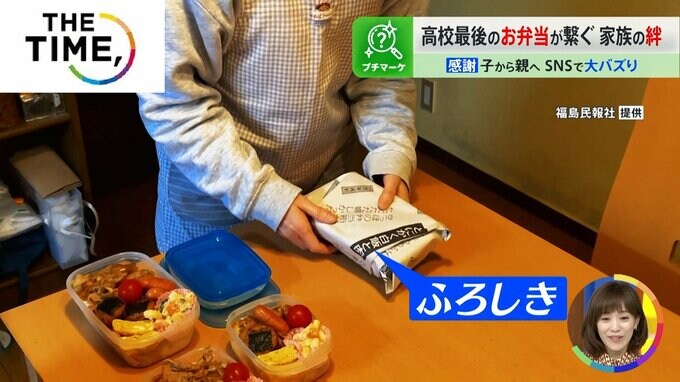 そしてメッセージの紙面は、お弁当を包む「ふろしき」として使われ高校生たちに届いたのです。