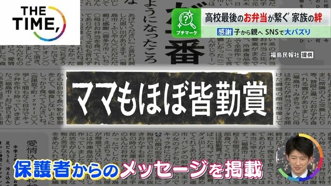 紙面いっぱいに、高校最後のお弁当の日を迎える高校生へ向けた“保護者からのメッセージ”を掲載しました。