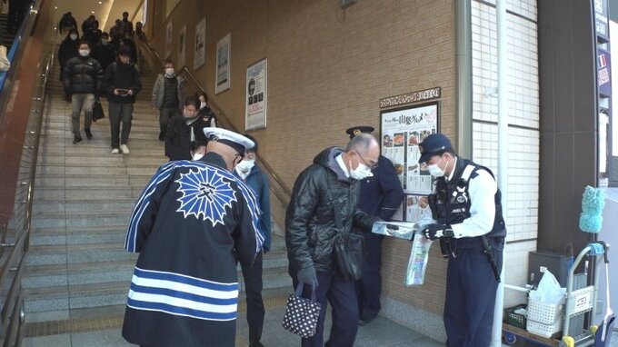 10日は関係者16人がJR甲府駅前で通勤・通学途中の人に向けてチラシなどを配り、注意喚起しました。