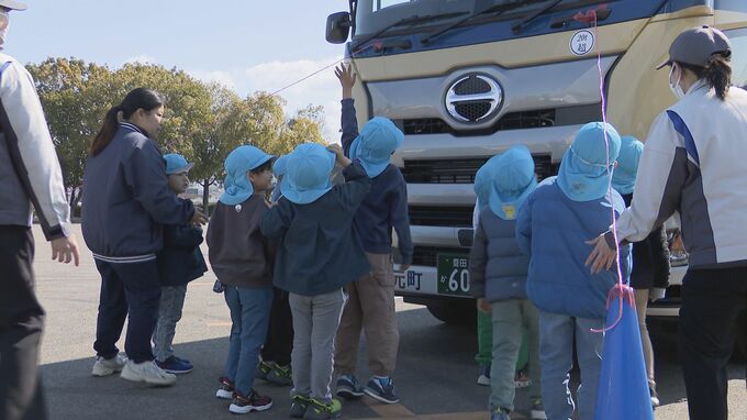 そのほか本物の大型トラックを使い、子どもたちは、死角に入ると運転手から見えなくなることを学びました。