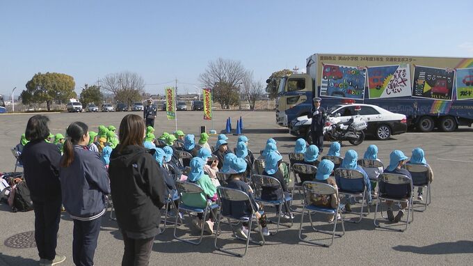 10日、豊田スタジアムに集まったのは、市内の竜神こども園に通う年長の園児およそ50人。春から小学1年生となるのを前に通学の時に気を付ける交通ルールを学びました。