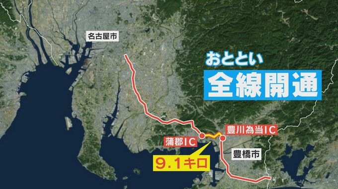 この日、蒲郡ICから豊川為当IC間の9.1キロが開通し、1972年に整備事業が始まって以来、50年余りの時を経て、ついに全線で開通となりました。