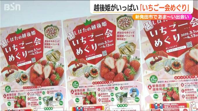 新潟県新発田市で、新潟県オリジナル品種のイチゴ“越後姫”をさまざまに使った市内37店舗のグルメを楽しめるイベント『いちご一会めぐり』が開催されています。