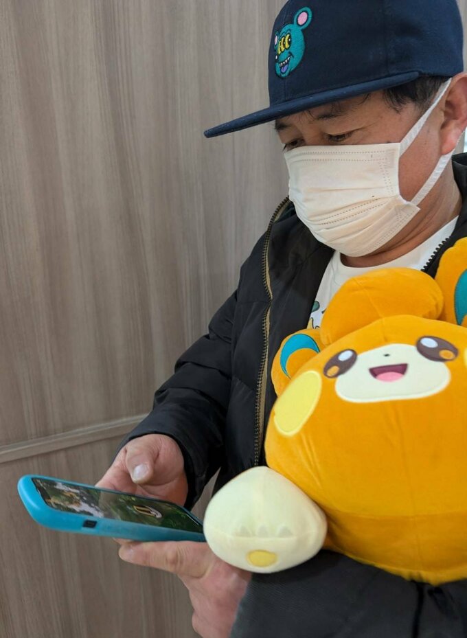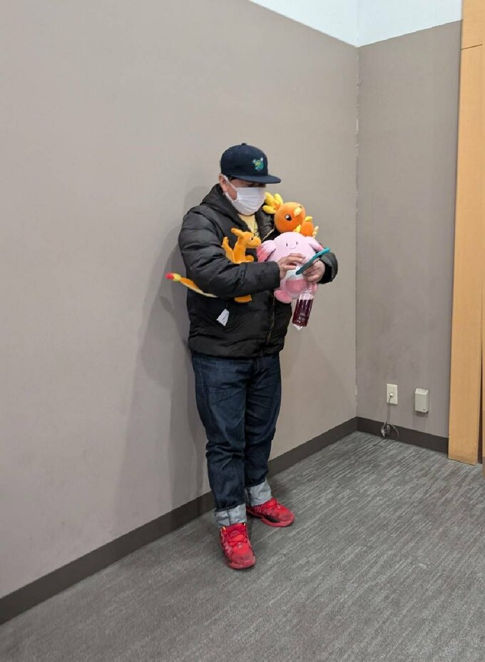 続けて、「おじさんが、ぬいぐるみを抱えながらポケモンGOを険しい顔してやってる 怪しい状態にさせられてたぜぇ」と大きなぬいぐるみを脇に抱えた自身の姿を投稿していました。