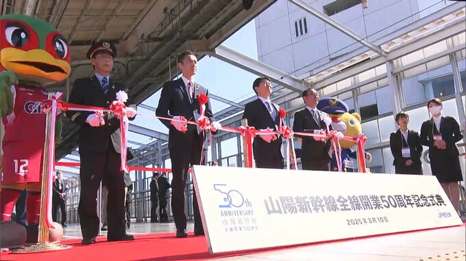1975年、3月10日に山陽新幹線が博多までの全線で開業してからきょう(10日)で50年を迎えました。交通の大動脈として経済や私たちの生活を支えてきた高速鉄道。きょう、各地で記念のセレモニーが行われました。
