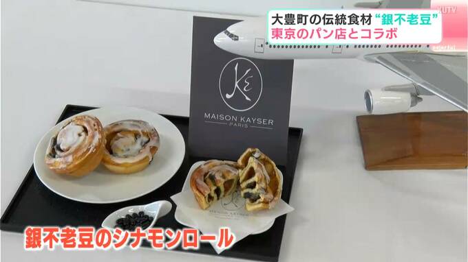 高知県大豊町特産の銀不老豆を使った新商品を日本航空と東京のパン店がコラボして開発し、9日、東京でお披露目されました。お披露目されたのは「銀不老豆のシナモンロール」です。日本航空がJAL国際線ラウンジや機…