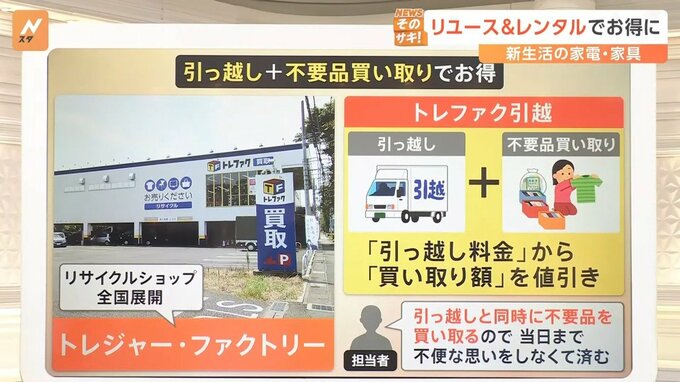このサービスの良いところは、引っ越し当日に買い取るので、不要品をギリギリまで使えることです。引っ越し当日まで使い、「やっぱりいるな」と思ったら売らなければいい。トレジャー・ファクトリーの担当者は「引っ越しと同時に不要品を買い取るので、当日まで不便な思いをしなくて済む」と話します。