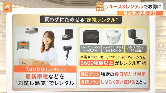 他にも、最新家電を買わずに試せる「Rentio」というサービスもあります。最新家電など“お試し感覚”でレンタルすることができます。