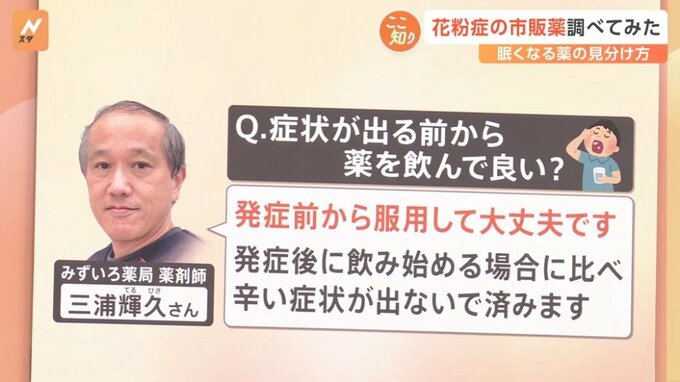 また、症状が出る前から薬を飲んで良いのか聞くと、「発症前から服用して大丈夫です。発症後に飲み始める場合に比べ、辛い症状が出なくて済みます」ということでした。