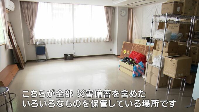 「こちらが全部、災害備蓄含めたいろいろなものを保管している場所です。うちで用意しているものだけでは、とてもじゃない。まわらない。」