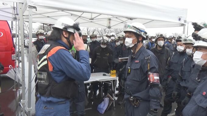 また、被害内容は事前に知らせない形式で進められ、警察と消防が情報を共有しながら建物内を捜索。被災した人を見つけるとブルーシートを使ったスロープで救出するなど、救助の流れを確認しました。