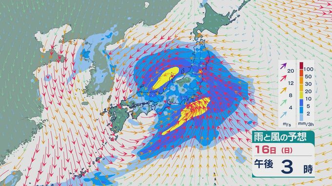 16日(日)は、低気圧が本州の南岸を通過し、東日本で雨が強まる見込みです。