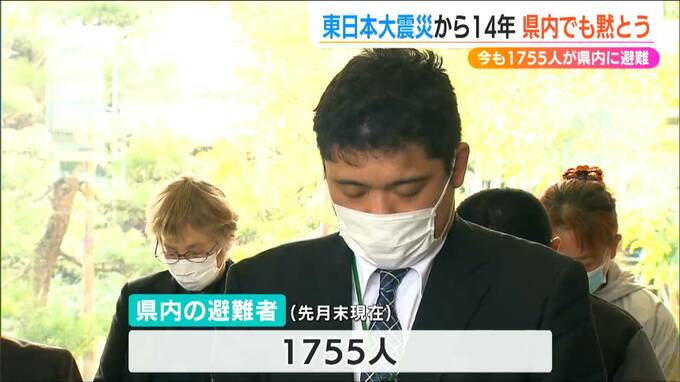 東日本大震災によって県内に避難している人は2月末時点で1755人。
