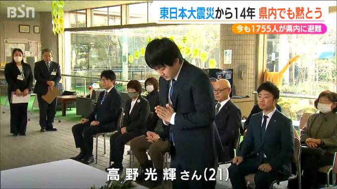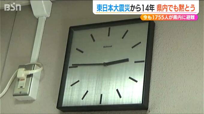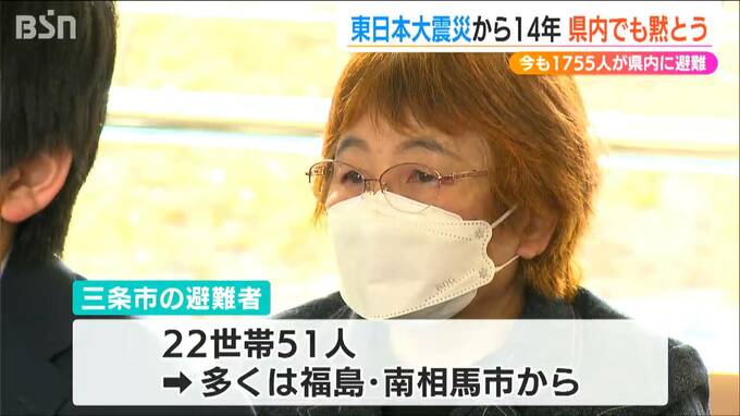 「こちら三条市の福祉センターには、東日本大震災で避難した人や市民らが集まっています。この後、地震発生時刻の午後2時46分に合わせ、黙とうを捧げます」