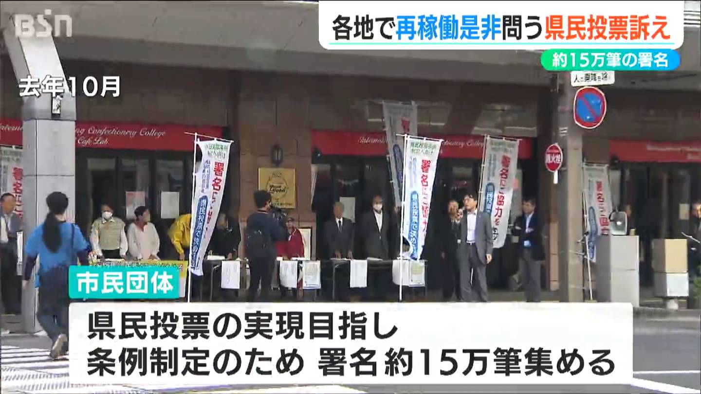 柏崎刈羽原発の再稼働を巡っては地元の同意が焦点となる中、市民団体が県民投票の実現を目指し、条例制定のための署名をおよそ15万筆集めています。