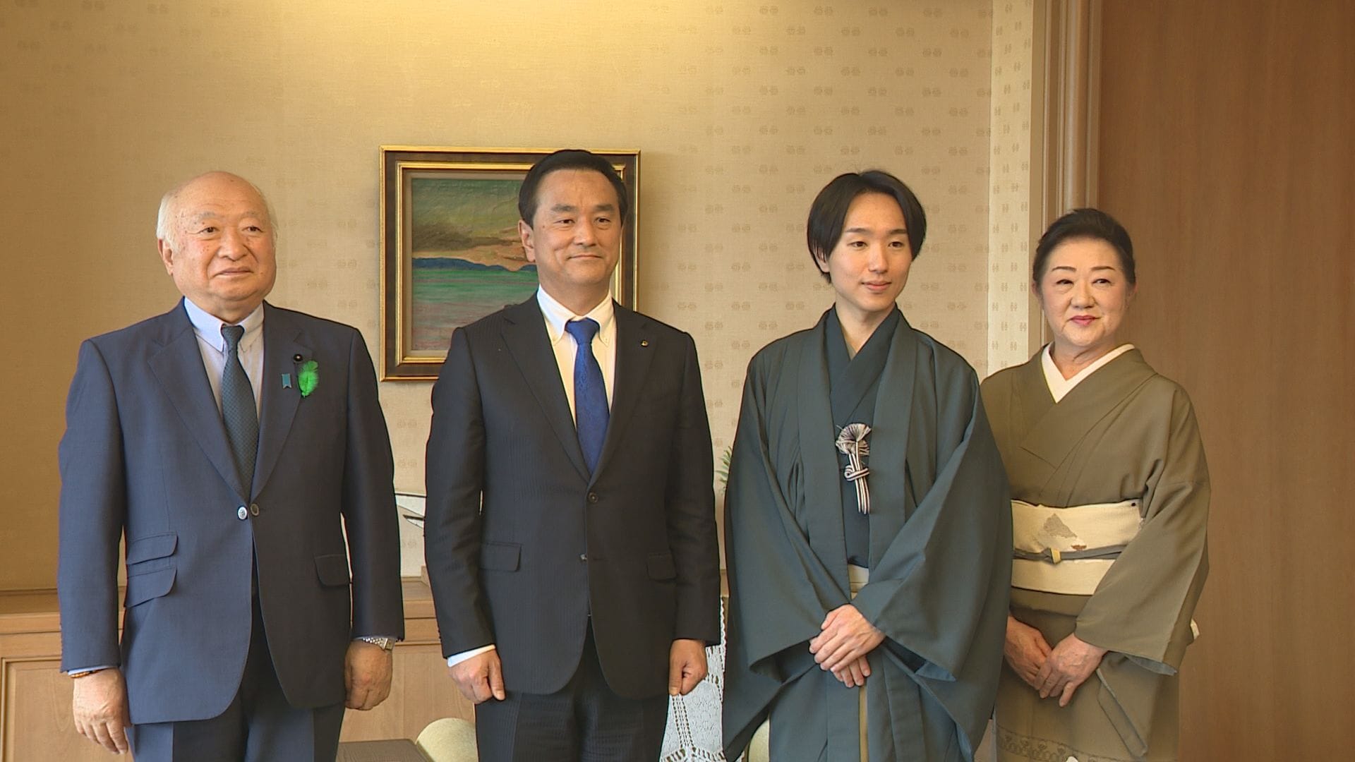 日本舞踊家の花柳梨道さんが、知事のもとを訪れました。