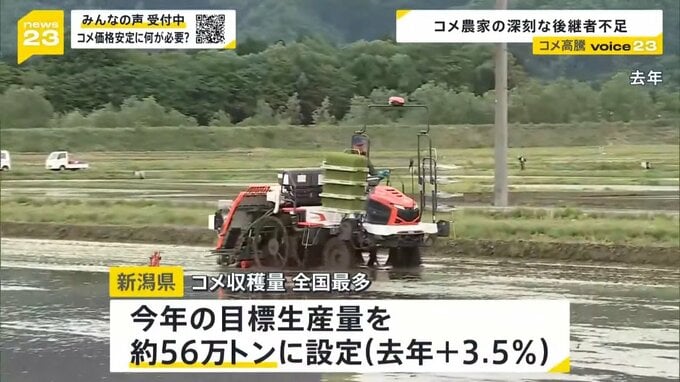 全国で最もコメの収穫量が多い新潟県は、今年の目標生産量を去年より3.5%多い約56万トンに設定。