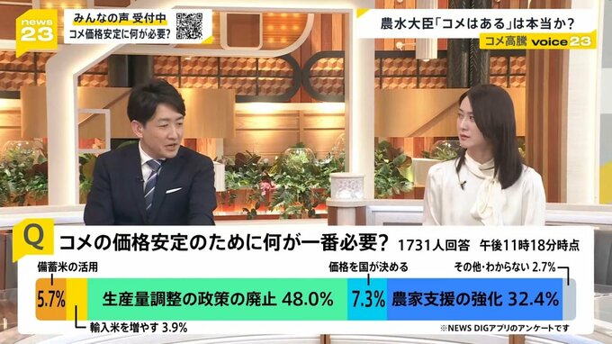NEWS DIGアプリでは『コメ価格安定に必要なこと』について「みんなの声」を募集しました。