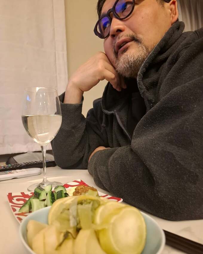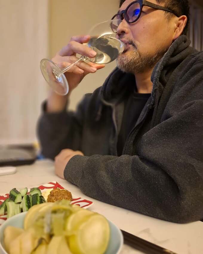 投稿された写真では、貴乃花光司さんがキュウリなどのおつまみと共に、グラスでお酒を飲みながら、リラックスする様子が見て取れます。