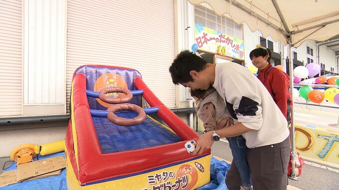 じゃんけんや玉入れなど参加するだけで駄菓子がもらえる7つのコーナーが設けられました。イベントは瀬戸内市で駄菓子店を経営する大町が地域の人に喜んでもらおうと毎年開いているもので、10回目です。きょうは約1万5千個の駄菓子を用意し、ゲームの参加者に配りました。