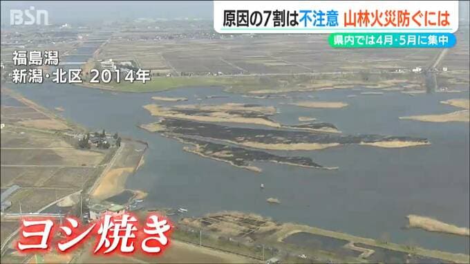新潟市北区の福島潟では60年ほど前から毎年、春に『ヨシ焼き』を行っています。
